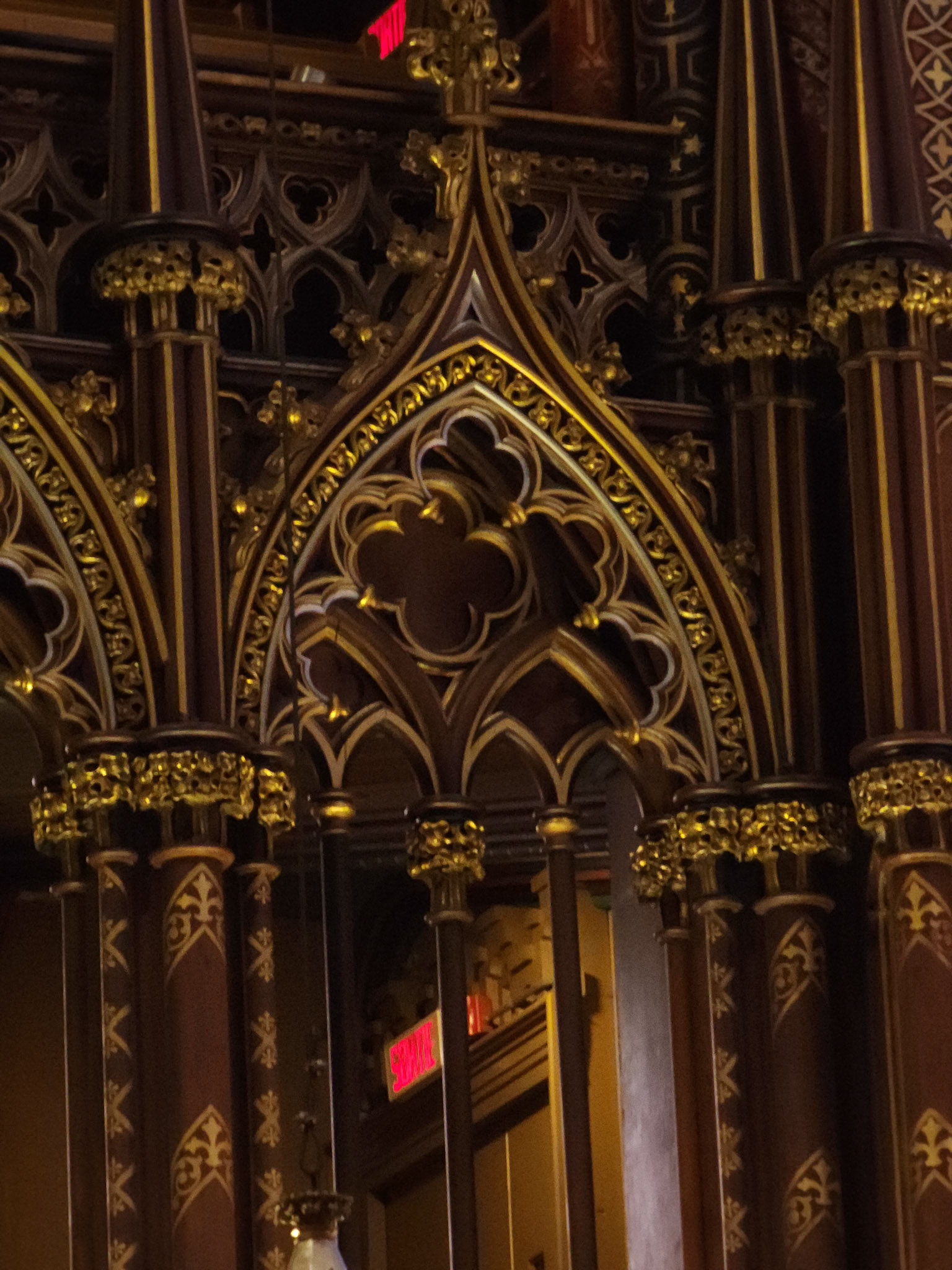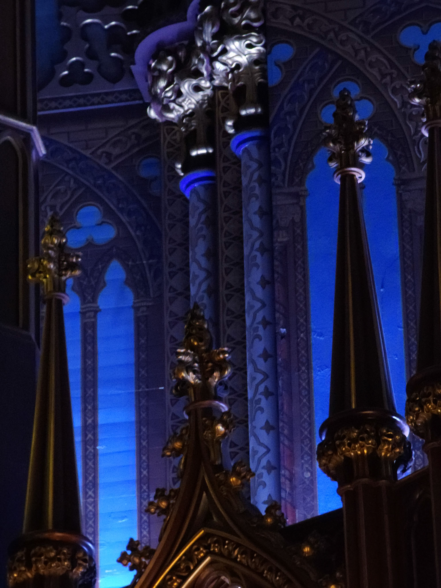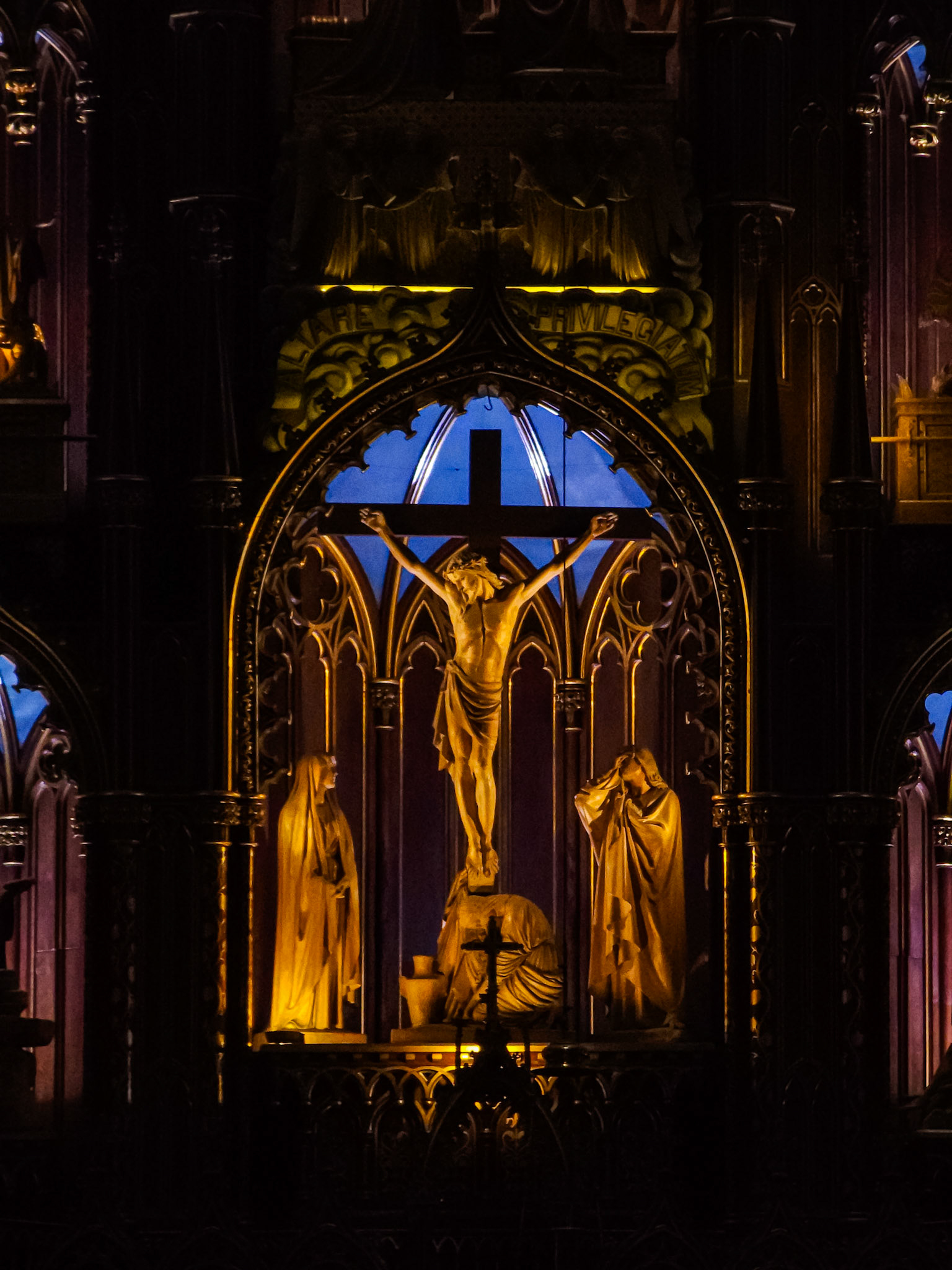 Renowned for its Neo-Gothic Architecture. The Basilica's architectural history serves as a religious and cultural landmaark for Quebec. Its intricate interior, mainly of woodwork and other artistic elements, such as the use of lights and paint that emphasizes its dark tone.
